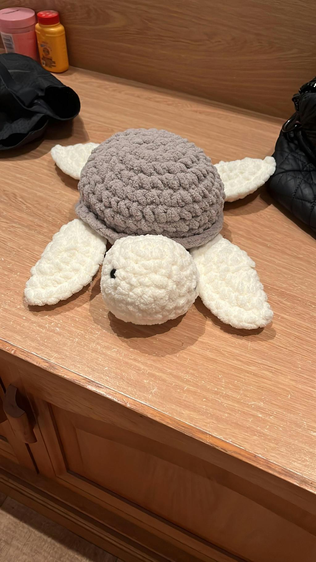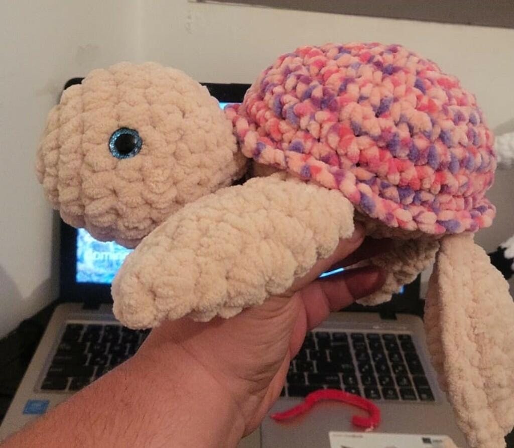 Vas a recibir un PDF descargable para tejer paso a paso a Fred la Tortuga Marina, el patrón incluye imágenes.