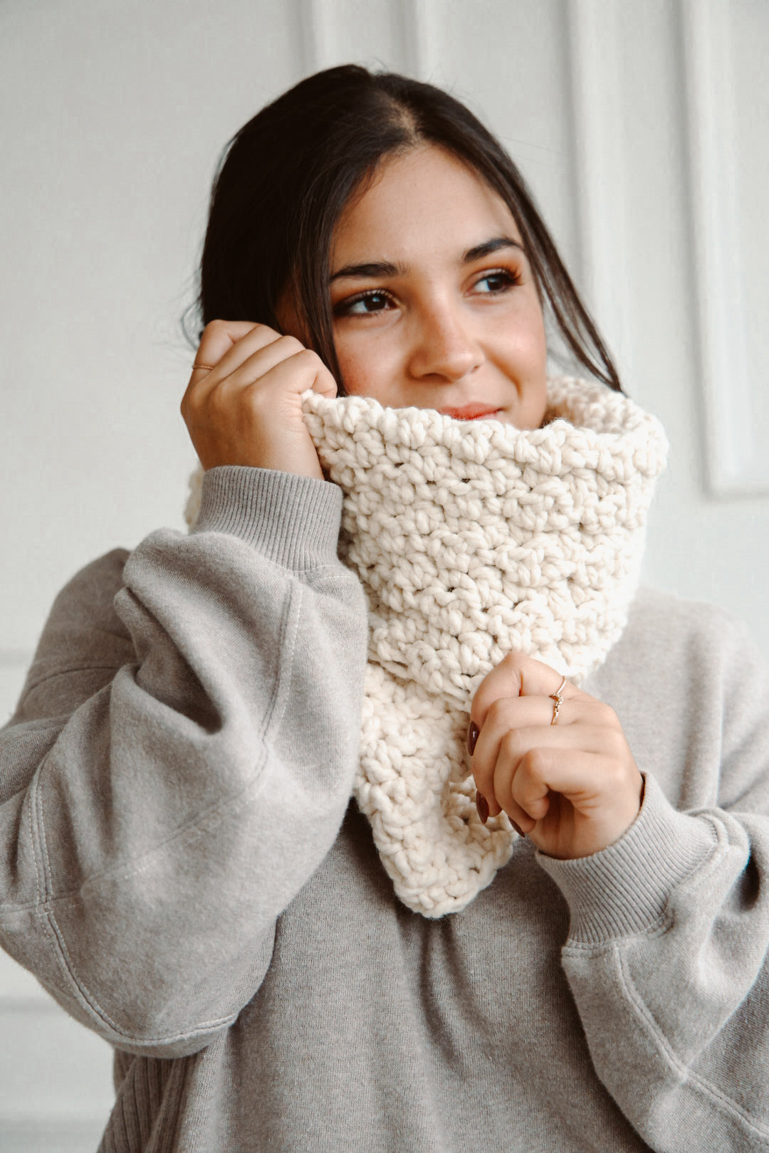 Recibirás un archivo PDF con instrucciones paso a paso para tejer "El cuello y bufanda Nollie".